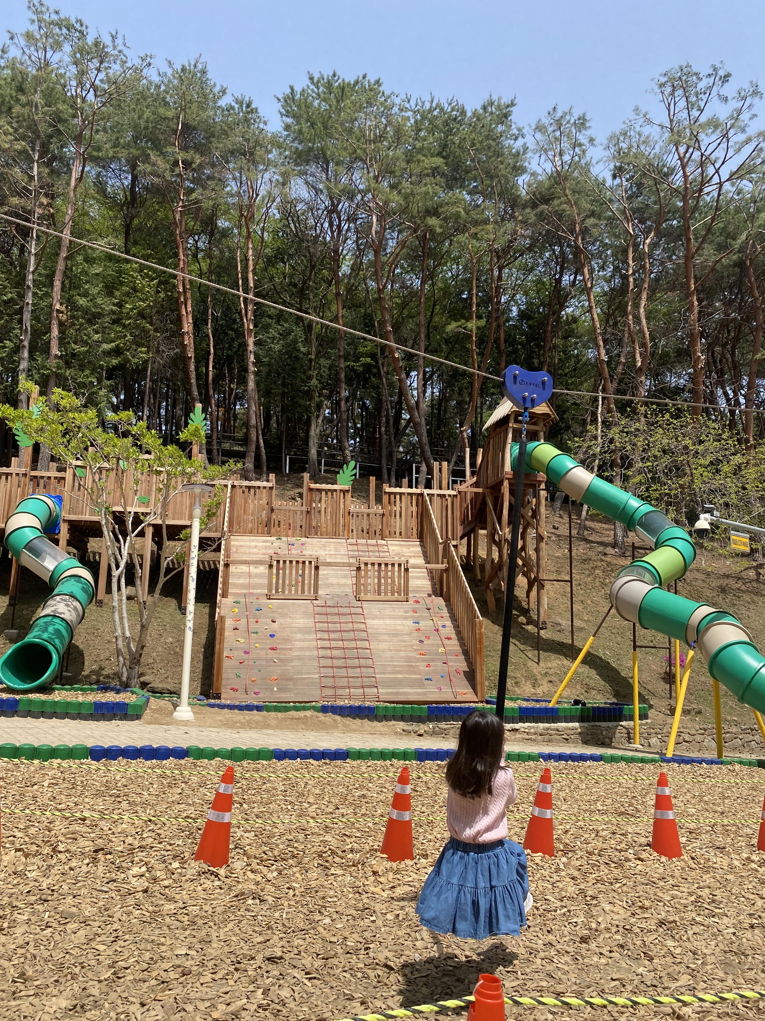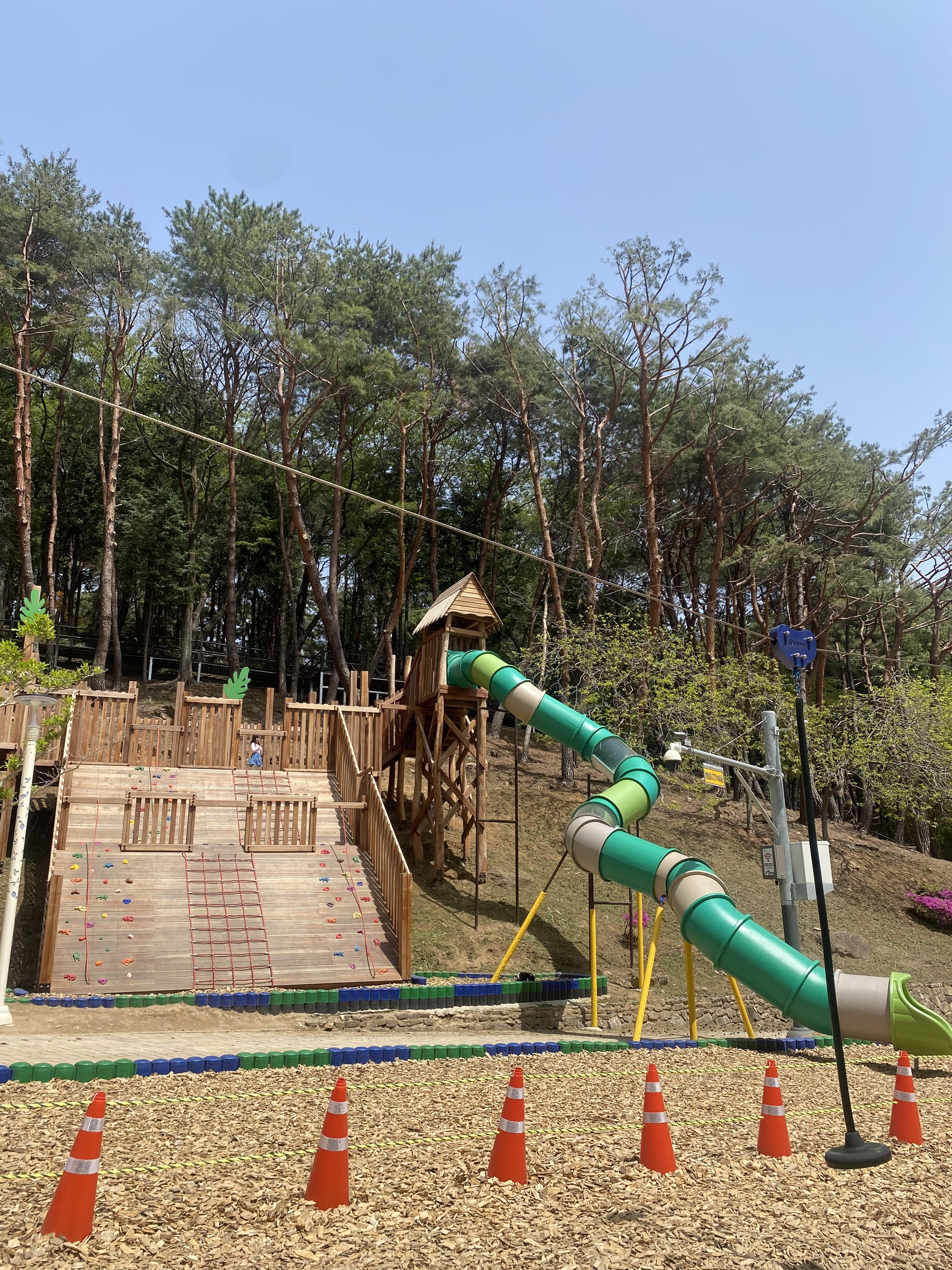 미끄럼틀 앞쪽으로는 적당히 재미있는 길이의 집라인도 마련되어있다